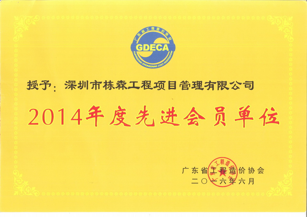 廣東省工程造價協(xié)會2014年度先進(jìn)會員單位
